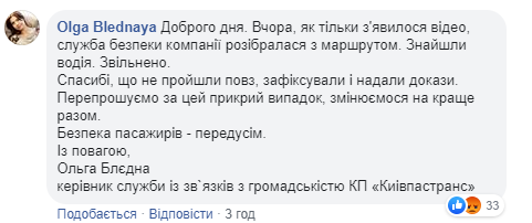 Відзначимо, що за опублікуванням цього ролика послідувала реакція «Київпастрансу». За інформацією речниці підприємства, водія-«геймера», який легковажив життями киян, звільнили з роботи. Котрийсь із користувачів у коментарях зіронізував, що тепер той може податися у кіберспорт.