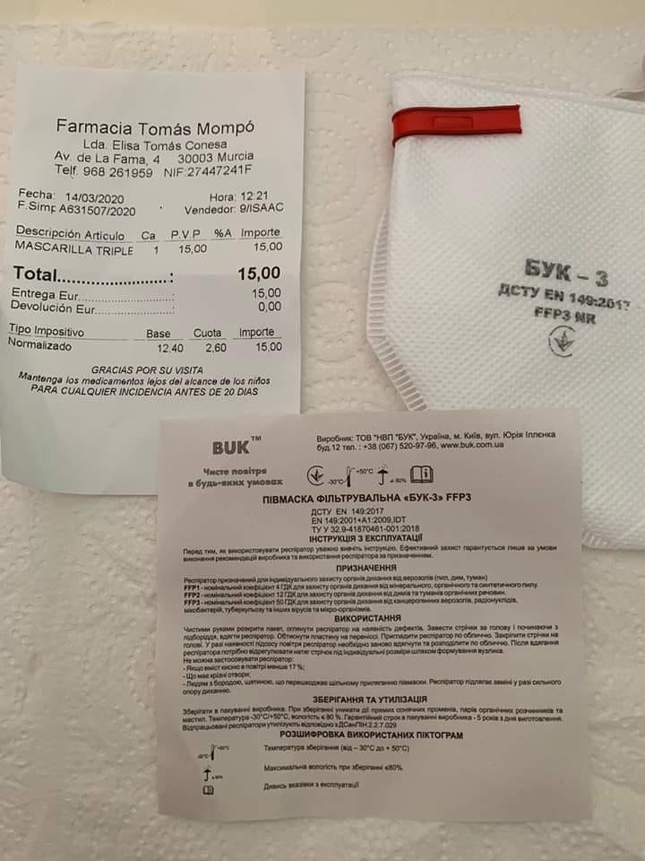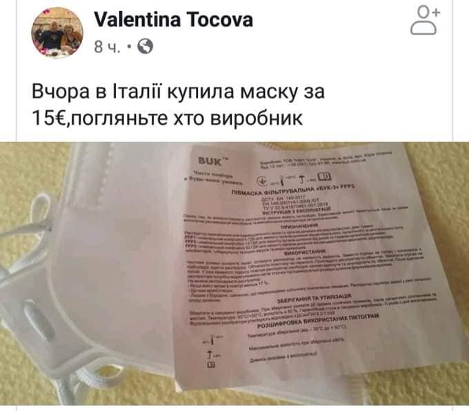 Крім того, півмаски фільтрувальні «Бук-3» купують масово і в Італії. Ціна такої маски, за повідомленням користувачів у Facebook, 15 євро.