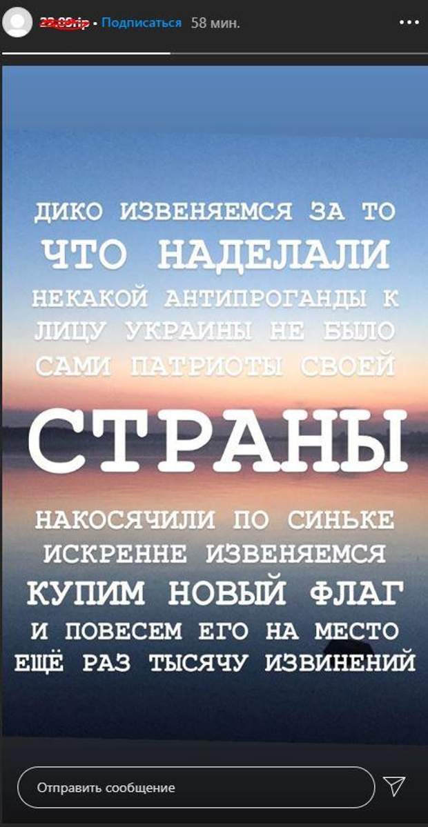 Та так легко відбутися їм не вдалося. Активісти у Запоріжжі доволі легко відшукали та покарали одну з учасниць цієї наруги – дівчину, яка і знімала відео. Вона теж попросила вибачення, після чого облила себе зеленкою. Хлопці, які, власне, і зірвали прапор, поки переховуються.