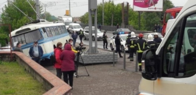 Припускають, що у тролейбуса відмовили гальма, і щоб уникнути зіткнення з транспортними засобами водій повернув кермо вправо.