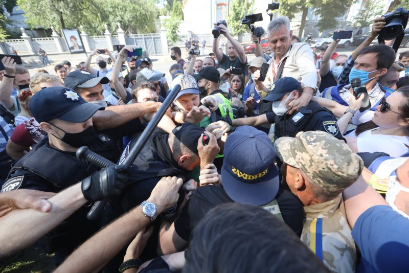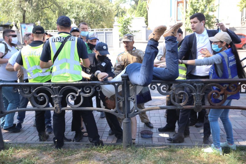 Близько 50 учасників акції намагались потрапити з палками до Ради, але поліція їх зупиняла.