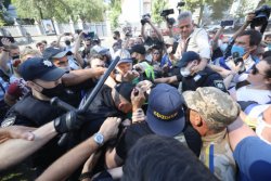 Біля будівлі Верховної ради проходить акція протесту через "мовний" законопроект. В ході протесту сталась штовханина між протестувальниками та правоохоронцями