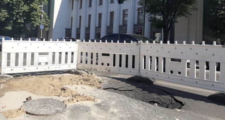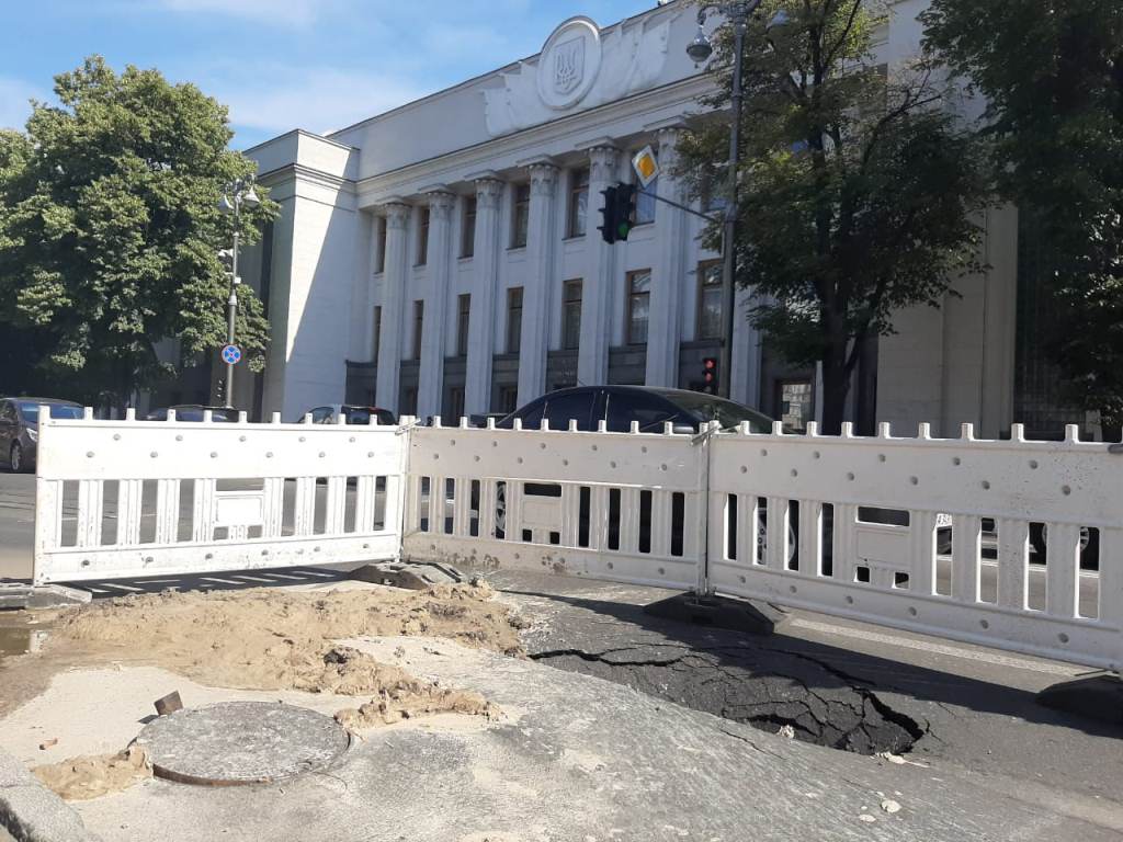 У Києві біля ВРУ прорив трубопроводу призвів до пошкодження дорожнього покриття.