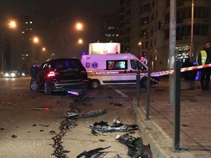 У цей час автомобіль Mercedes з іншого боку перехрестя їхав на зелене світло. В результаті стався сильний удар, автомобіль Toyota відкинуло на тротуар, де були припарковані інші автомобілі.