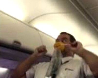 Стюард однієї із канадських авіаліній, Ніколас Демур, дуже креативно підійшов до буденного інструктажу з техніки безпеки. Відразу видно, що в чоловікові гине великий актор комедійного жанру.