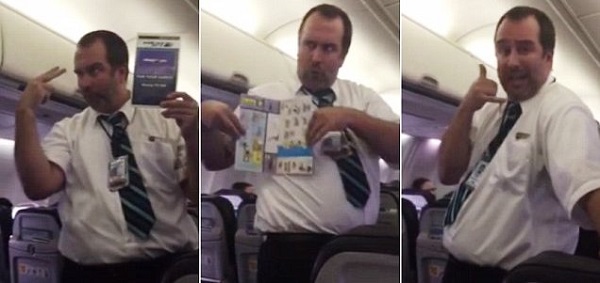 Бортпровідник канадського бюджетного перевізника WestJet Airlines, який провів незвичайний інструктаж з техніки безпеки, став зіркою Інтернету.