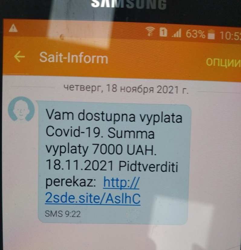 Якщо раніше злочинці надсилали в наші телефони повідомлення про виграш квартири, машини чи грошей, то тепер вони пишуть про виплату за ковід-19 і просять підтвердити переказ коштів на вашу картку шляхом натискання на активне посилання (тобто на ті букви, що написані синім).