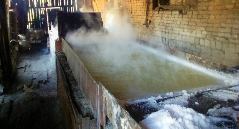 Щоб випарювати сіль із ропи, на підприємстві використовують технологію наших предків: палять дрова і так у величезних металевих чанах нагрівають ропу.