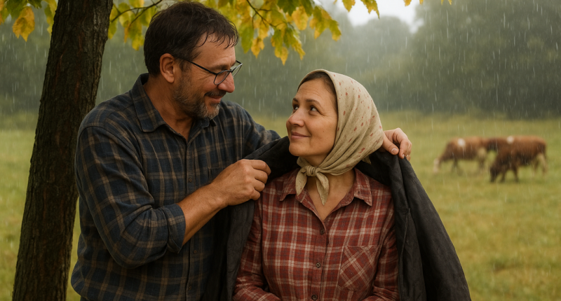Перший раз вони по-справжньому розговорилися, коли почався дощ. Лив так, що не видно було ні поля, ні неба. Слава сховався з книжкою під вербою, а Маруся – до нього. І там розсміялася від щирого серця. Він дав їй свою куртку, і вона вперше за довгі роки відчула себе жінкою – тією, якій дарують увагу, із якою діляться теплом.