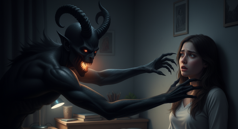 Щойно Дарина заплющувала очі, як бачила його – демона з рогами. Він стояв, нахилившись над нею. З рота то котилася слина, то виходив вогонь. А, щойно демон розкривав пащу з гнилими зубами, дівчина прокидалася в холодному поту.