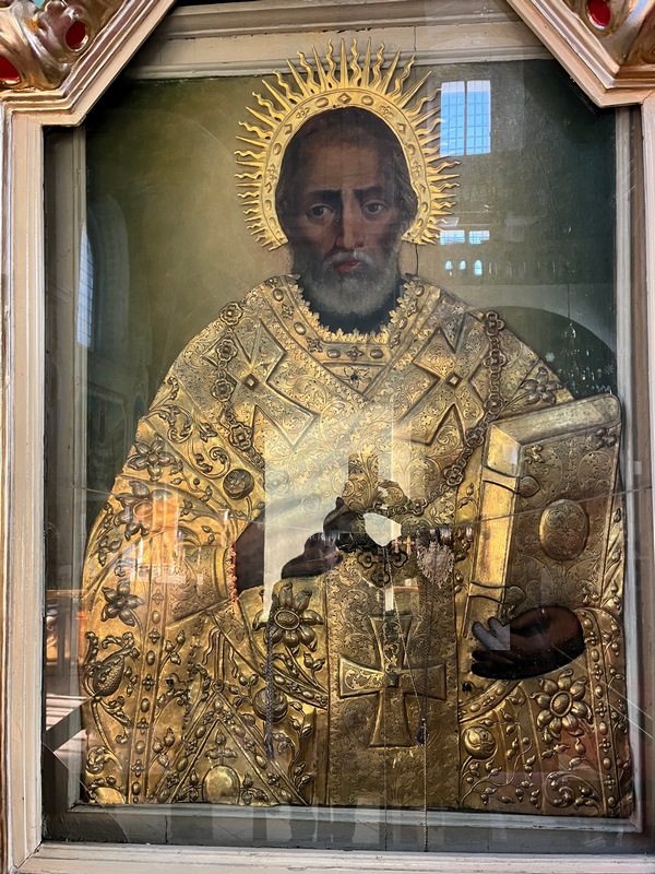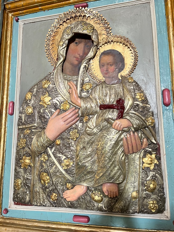 – Храм, у якому ми з вами перебуваємо, перебудований у 1723 році. І древній напис на фасаді це підтверджує, – показує Мирослава Якимчук цифри над входом до Свято-Миколаївської церкви. – Із тих часів збереглися дзвіниця і митрополичий будинок. Його реставрацію ми почали. Але завершимо, коли реставратор повернеться з фронту.